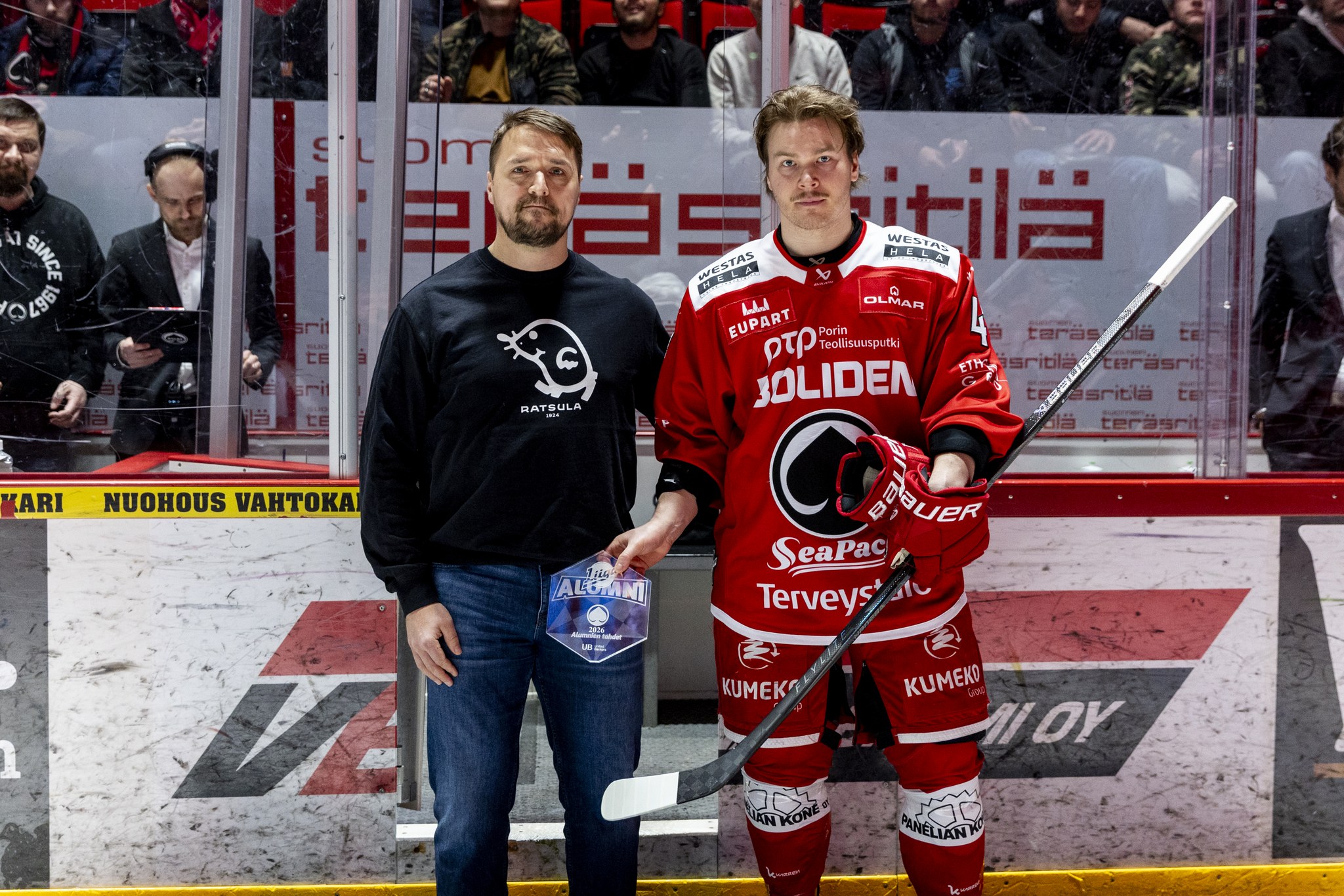 Pasi Tuominen ja Jan-Mikael Järvinen ! Ässien Alumnien Tähti kaudella 2024-2025. Kuva Tomi Vastamäki