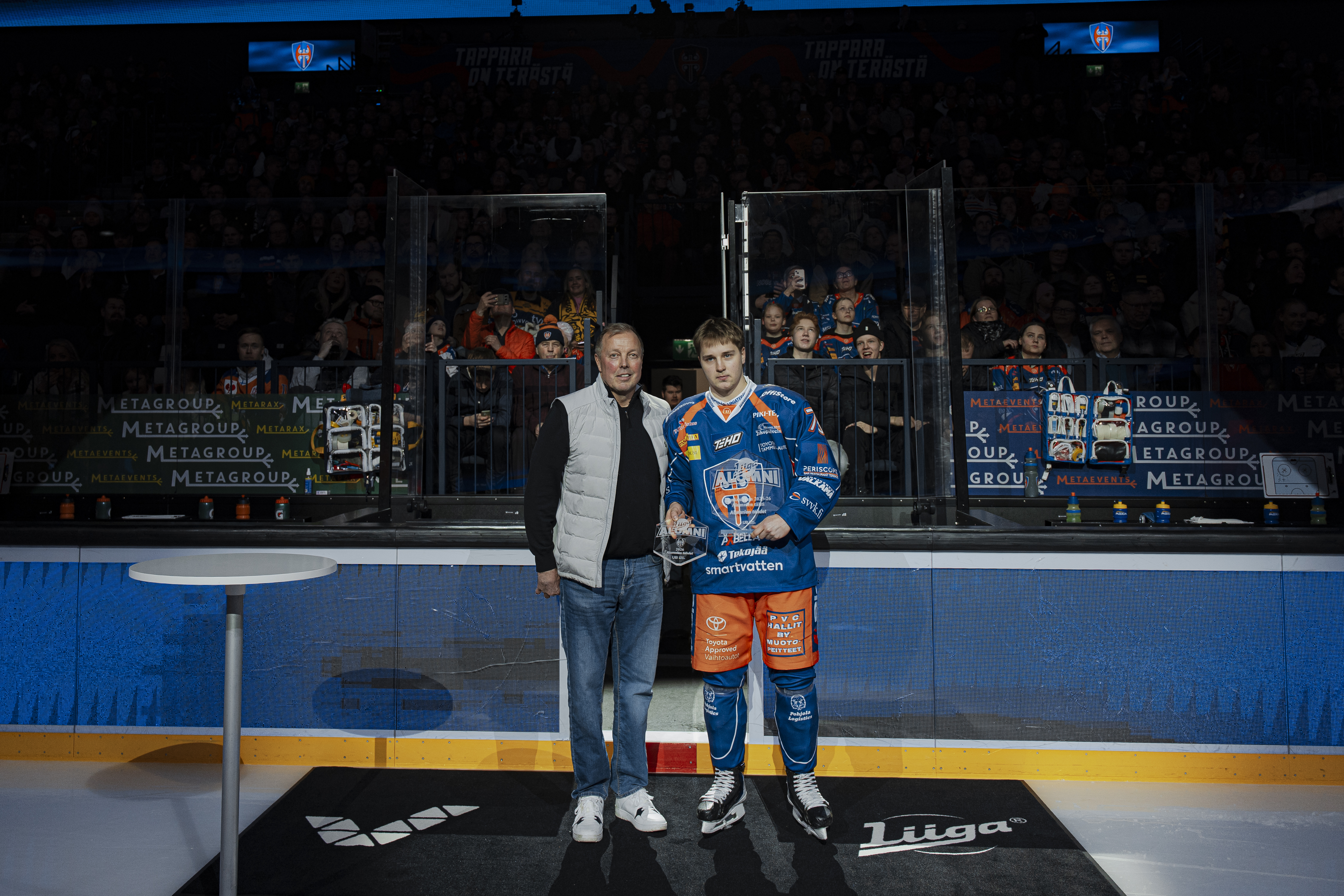 Teemu Virkkunen ja Miikka Männikkö palkitsivat Kristian Kuuselan kaudella 2018-19
